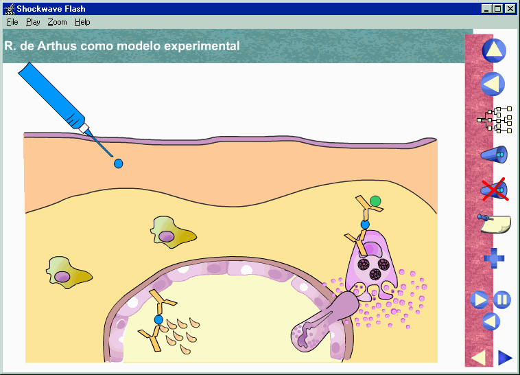 En las figuras 3 y 4 podemos ver dos instantáneas pertenecientes a animaciones del tutorial Reacciones de Hipersensibilidad: