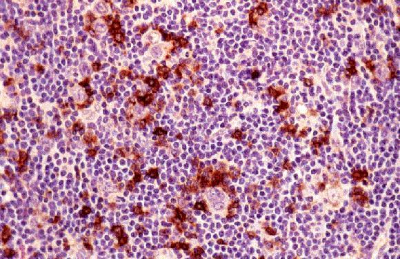 | La presencia exclusiva de células T CD57+ alrededor de las células L&H establece un criterio inmunohistoquímico adicional diagnóstico en la EHPLN. CD57. |
