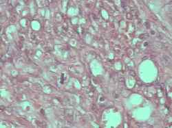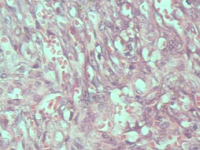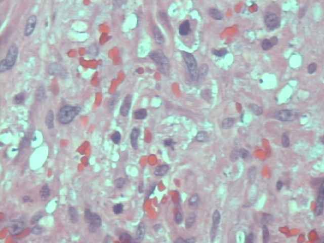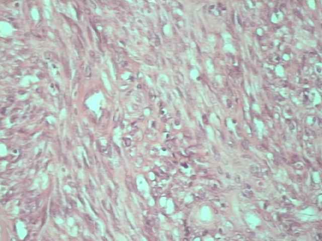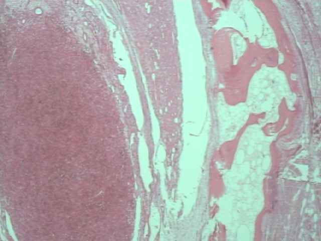 Imagen 1. Caso 1 Imagen 2. Caso 1 (40X) Imagen 3: Areas fusiformes (I) Imagen 4: Hendiduras vasculares (I) Imagen 5: Vasos hamartomatosos (I) Imagen 6: Mitosis (I) Imagen 7: Caso 2 (RX) Imagen 8: Caso 2 Imagen 9: Extensión ósea (II) Imagen 10: HE 200x (II) Imagen 11: HE 400x (II) Imagen 12: Vasos linfáticos (II) Imagen 13: Mitosis (II) Imagen 14: Vimentina (II) Imagen 15: CD-34 (II) Imagen 16: CD-34 (II) Secuencias de vídeo (Caso 2) 37" 300 Kb/seg. (1,33 Mb) 37" 200 Kb/seg. (926 Mb)