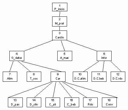 Vamos a describir el funcionamiento de GEDA. La descripción es similar a cada uno de los subsistemas correspondientes a cada proyecto, por lo que únicamente se muestra la del módulo Cardiovascular. Dentro de este módulo, se pueden realizar las siguientes funciones (la estructura de las funciones se muestra en la Figura 2):