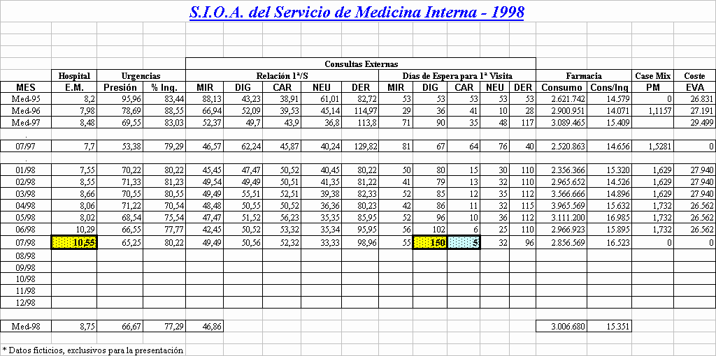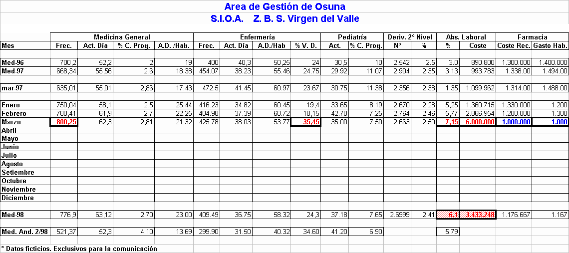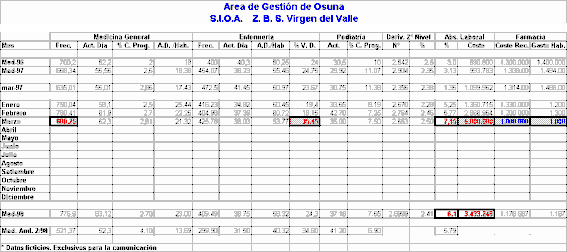 Conseguimos un Sistema de Información de manera rápida y eficaz, que posibilita la valoración mensual, trimestral y anual de aspectos cuali-cuantitativos de las unidades asistenciales que integran el conjunto del Area Sanitaria. De igual manera permite monitorizar cualquier circunstancia considerada de mayor magnitud.