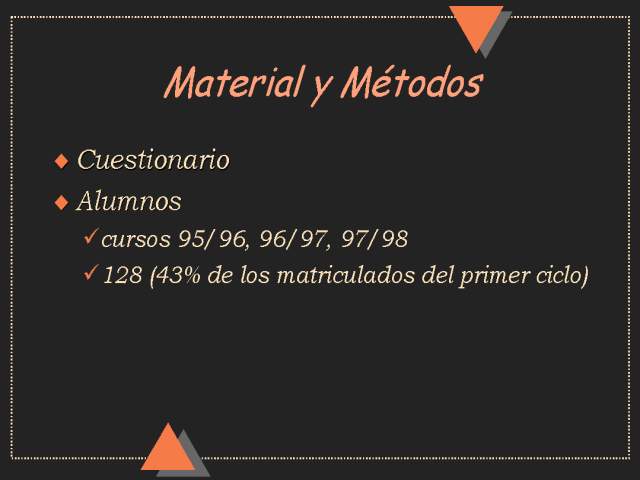 Este cuestionario voluntario, se paso el primer día de clase durante los cursos 95-96 hasta el presente curso 97-98 que cubre el primer ciclo de la licenciatura