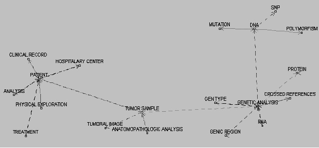 1. Introducción La información clínica y genómica ha estado, hasta ahora, almacenada en sistemas completamente heterogéneos [1]. Al integrar bases de datos heterogéneas, se consideran dos niveles de heterogeneidad: (1) plataformas tecnológicas diferentes (máquinas, sistemas operativos, y sistemas gestores de bases de datos), y (2) esquemas de base de datos diferentes. El punto (1) se refiere al aspecto de búsqueda de soluciones técnicas, mientras que el (2) se refiere a aspectos teóricos o conceptuales. Esto quiere decir que aunque bases de datos diferentes pueden contener información relativa al mismo dominio, usualmente tendrán diferentes esquemas. Por ello, es necesario crear un "mapping" o correspondencia entre el esquema físico de una base de datos y un esquema conceptual (en este artículo, basado en ontologías), creado mediante la utilización de terminología estándar asociada a un dominio (el dominio biomédico). La idea principal es que unidades de información similares almacenadas en diferentes bases de datos pueden ser nombradas de la misma manera en sus respectivos esquemas conceptuales de mapping. Este hecho permitiría la unificación automática de dos o más esquemas conceptuales que contengan entidades, creando un nuevo repositorio virtual de unificación que engloba la información de sus repositorios hijo. Los procesos de mapping y unificación permiten crear una organización taxonómica — es decir, una relación de contención o subsunción — del espacio de información disponible mediante la creación de una jerarquía de repositorios virtuales. Estos repositorios virtuales — ya sean de mapping o de unificación — facilitarían el acceso unificado a diferentes bases de datos remotas. 2. Métodos La solución propuesta para gestionar la heterogeneidad de los esquemas de las bases de datos se afronta mediante una teoría de unificación basada en la creación de un esquema virtual unificado que integre los diferentes esquemas locales de las bases de datos. El esquema unificado proporciona una visión homogénea del espacio de información, que está compuesto por los datos existentes en las diversas bases de datos remotas [2]. El proceso de generación del esquema global conlleva la realización de dos procesos: un proceso denominado de "mapping" cuyo objetivo es traducir los esquema internos de las bases de datos a esquemas conceptuales auto descriptivos, y un segundo proceso, denominado de unificación, que permite la integración de distintos esquemas conceptuales obtenidos previamente [3][4]. El primero, debido a su carácter semántico deberá llevarse a cabo con ayuda humana, mientras que el segundo se llevará a cabo de forma automática. Al realizar la unificación e integración de bases de datos deben ser considerados tres niveles de heterogeneidad: (1) Heterogeneidad de la plataforma tecnológica: diferentes sistemas hardware y sistemas operativos, (2) Heterogeneidad del Sistema Gestor de Base de Datos (en adelante, SGBD), (3) Heterogeneidad del esquema de la base de datos y del modelo de datos conceptual asociado. INFOGENMED introduce una solución a los dos primeros puntos mediante una arquitectura basada en agentes inteligentes, que facilita la comunicación entre módulos. Asimismo, establece un sistema altamente flexible con respecto a la integración de nuevos servicios y bases de datos en el futuro. Cada una de las bases de datos va a estar gestionada por un agente, por lo que si queremos añadir alguna nueva, basta con añadir un agente más al sistema. Existen diferentes clasificaciones dependiendo de varios rasgos de los agentes. La que interesa a este proyecto es la clasificación entre agentes estáticos y agentes móviles. Los agentes estáticos (usados en este proyecto) son entidades con ejecución limitada al sistema donde se inicia. Interactúa con entidades locales, ya sean otros agentes, programa o usuarios. Pero también puede interactuar con recursos remotos vía CORBA, RMI, RPC. Los agentes móviles son agentes con capacidad de movimiento que interactúan directamente con entidades locales o remotas, y si son remotas el agente migrará hacía la máquina contenedora. Un agente es una entidad software que se comunica con otros agentes mediante una plataforma común. Esta plataforma puede estar distribuida en varias máquinas. Solamente una aplicación Java y, por tanto, una única Máquina Virtual Java, es ejecutada en cada máquina. Los agentes están implementados como threads Java y residen en Contenedores de Agentes los cuales proporcionan soporte para la ejecución de los agentes. Las principales funciones que realizan son proporcionar al administrador del sistema un método fácil para unir una nueva base de datos al sistema y desarrollar APIs para que el usuario pueda realizar preguntas al sistema y para que pueda recuperar los datos resultantes de las mismas. 3. Resultados A continuación se muestra una pantalla con los comportamientos activos de un agente recién creado, uno de ejecución y otro de configuración. Figura 1. Ejemplo de pantalla mostrando los comportamientos de un agente Los agentes facilitan la infraestructura necesaria para conectar los diversos subsistemas de INFOGENMED. Para realizar una búsqueda de prueba se han tomado dos bases de datos médicas con contenidos relacionados con tumores. Para la representación de ontologías, que son usados en INFOGENMED para varias tareas, se ha usado el lenguaje DAML+OIL, tanto para representar los esquemas virtuales (obtenidos gracias al mapping, que se muestra en la figura 2, y a la unificación) como para representar los resultados de una consulta, es decir, instancias de clases DAML+OIL. Una parte importante aportada por este proyecto ha sido el hecho de que se acepte cualquier tipo de sintaxis SQL. El sistema cogerá un fichero de configuración XML para conseguir la sintaxis adecuada. Figura 2. Ejemplo de mapping entre dos bases de datos en 