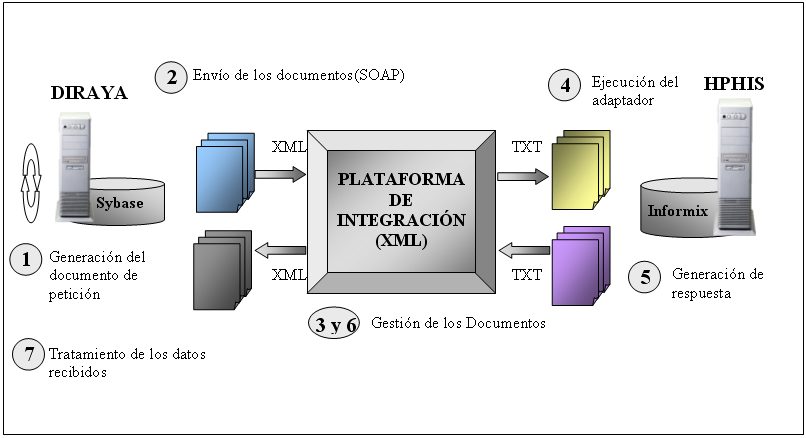 e Informática, Hospital Universitario Reina Sofía.14004- Córdoba Resumen: El presente comunicado pretende dar una visión general y clara sobre la necesidad que existe en la actualidad de integrar las distintas aplicaciones informáticas, así como que esta integración sea transparente a los sistemas, lenguajes, motores y plataformas existentes. Uno de los lenguajes o mejor dicho metalenguajes que se están imponiendo en la actualidad por su sencillez y versatilidad es el XML (eXtensible Markup Languaje). Es la formula adoptada para la integración entre aplicaciones del S.A.S., la forma en la que la plataforma de integración creada por SSCC realizará el intercambio entre los diferentes aplicativos que conforman el mapa de Salud de nuestra Comunidad Autónoma. Como Pionera en esta línea, Diraya y la aplicación Informática de nuestro Hospital, el Hospital Universitario "Reina Sofía" de Córdoba se han integrado siguiendo este estándar.
