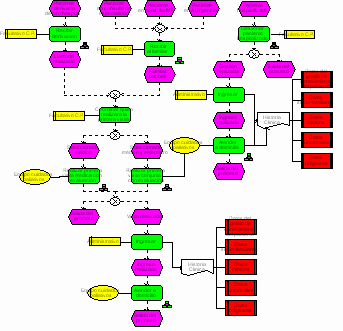 Hemos modelado los procesos de atención domiciliaria de Pacientes Terminales, atención domiciliaria de Pacientes Posquirúrgicos y atención domiciliaria de Pacientes Crónicos. El modelado de los dos primeros procesos ha sido la representación del proceso real "as is" donde no se ha introducido las TIC, y el tercer proceso también es un modelo real pero en este caso con aplicación de TIC´s, basado en los modelos UML aportados del proyecto Chronic [4]. El Diagrama de Procesos Guiado por Eventos de primer nivel del paciente terminal es el siguiente: