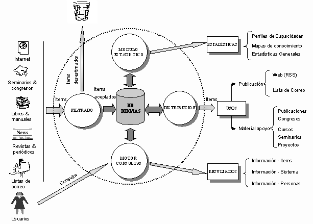 Tal y como se puede ver en la figura 1, BIKMAS consta de cuatro módulos, cada uno de los cuales se encarga de la realización de las tareas descritas en la introducción. 2.1. Modulo de Filtrado de items de información
