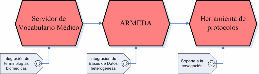 INFOGENMED: UN LABORATORIO VIRTUAL PARA LA INTEGRACIÓN DE INFORMACIÓN CLÍNICA Y GENÉTICA EN APLICACIONES MÉDICAS F. J. VICENTE1, I. HERMOSILLA1, M. GARCIA REMESAL2, D. PÉREZ DEL REY2, B. ROMERO2, I. OLIVEIRA3, J.L. OLIVEIRA3, A. SOUSA PEREIRA3, F. MARTIN-SANCHEZ1 1 2 Grupo de Informática Biomédica. Universidad Politécnica de Madrid. 3 IEETA. Universidad de Aveiro, Portugal. Un paciente acude al médico para realizar una consulta sobre una patología que tiene una prevalencia de cinco casos por cada diez mil personas, una enfermedad rara [8]. El clínico sabe que las causas de esta enfermedad son genéticas, pero no recuerda el nombre del gen que, al mutar, produce una proteína defectuosa. Tampoco conoce el nombre de la proteína ni los detalles de la vía metabólica que no funciona correctamente al estar disminuida la función enzimática de esa proteína. Toda esa información se halla disponible en Internet y en bases de datos locales de su hospital, sin embargo, el clínico no dispone del tiempo suficiente para navegar por las decenas de recursos de información genética existentes, que no están integrados y que además se han diseñado principalmente para ser empleados en un laboratorio de investigación biológica y no en una consulta clínica. En esta comunicación se describe cómo en el marco del proyecto europeo INFOGENMED se trata de facilitar este tipo de funcionalidades de acceso a información genética de interés para los clínicos haciendo uso de los métodos y técnicas de la Bioinformática Médica. 1. Introducción En septiembre de 2002, dio comienzo el proyecto europeo INFOGENMED (IST-2001-39013) (http://www.infogenmed.net) [1] que finalizará en agosto de 2004. Este proyecto está coordinado por el grupo IEETA de la Universidad de Aveiro, Portugal, y en él participan grupos de investigación y empresas lusas, suecas y españolas. En concreto por parte española participan el Grupo de Informática Biomédica de la Universidad Politécnica de Madrid y el Área de Bioinformática del Instituto de Salud Carlos III. En este tiempo, se ha diseñado una herramienta que trata de dar respuesta a las inquietudes manifestadas en las entrevistas y cuestionarios cumplimentados por los usuarios finales (genetistas médicos, clínicos, investigadores), llevadas a cabo al principio del proyecto. El resumen de las mismas se centra en la necesidad de integrar las fuentes de información de naturaleza heterogénea, ampliamente distribuidas por la web, en un repositorio virtual que acceda a datos clínicos, genéticos y moleculares sobre una patología en un único entorno, fácilmente accesible por el usuario. Hasta la fecha, las bases de datos contabilizadas en la actualización anual de "The Molecular Biology Database Collection: 2004 update" [2] suman 548, categorizadas jerárquicamente. La especificidad de estos recursos y la especialización requerida para navegar por ellas hacen de estas colecciones herramientas solo accesibles a determinados colectivos muy experimentados, principalmente investigadores biológicos. Las bases de datos están elaboradas ad hoc, son heterogéneas, ofrecen diversos modos de acceso y a menudo emplean distintos sistemas para denominar a las mismas entidades (por ejemplo aliases de un gen, o diferentes identificadores de proteínas). Recuperar información relevante a partir de estas bases de datos para poder ser empleada en el entorno clínico requiere una serie de conocimientos y habilidades que INFOGENMED trata de proporcionar de un modo automático y transparente para el usuario. 2. Objetivos INFOGENMED se ha diseñado para ayudar al clínico a superar estos obstáculos, almacenando en un repositorio virtual la información de todas las bases de datos que integra este sistema. Hay que decir aquí que los ámbitos gestionados por el sistema inicialmente, son dos: -cáncer y -enfermedades genéticas raras. En el primer caso, el sistema tiene como objetivo integrar diversas bases de datos privadas provenientes del entorno clínico (datos de pacientes, patología, datos de laboratorio, prescripción de medicamentos, ...) con bases de datos de centros de investigación que recogen resultados de experimentos genómicos y proteómicos (secuencias, polimorfismos, expresión de genes obtenidos con microarrays, expresión de proteínas, ....). INFOGENMED proporciona un modelo virtual de datos en el que se pueden realizar estudios de correlación entre las características genéticas y moleculares de un tumor y la evolución clínica del mismo. En el entorno de las enfermedades raras, INFOGENMED debe facilitar la recuperación de información relevante sobre las bases moleculares de una patología, integrado terminologías, accediendo a recursos públicos a través de Internet y facilitando toda esa información al clínico sin que éste necesite conocer los códigos y nombres de las entidades genéticas subyacentes. Actualmente existen varios recursos dedicados a este área: el Instituto de Investigación de Enfermedades Raras del Instituto de Salud Carlos III (http://cisat.isciii.es/er/), ORPHANET, el portal francés de Enfermedades Raras (http://www.orpha.net/) y el sistema estadounidense NORD, que es una base de datos privada con la misma finalidad que las europeas y dependiente de la "Office of Rare Diseases" (http://rarediseases.info.nih.gov/) de naturaleza gubernamental. En ambos casos INFOGENMED se ha desarrollado para: integrar todas las fuentes biológicas, genéticas y clínicas relevantes mediante el empleo de un modelo conceptual y un protocolo físico, independientes de la arquitectura de la bases de datos y de la plataforma tecnológica que las sustenta. El modelo conceptual (representado en la figura 1) relaciona las entidades que pueden ser accedidas por el sistema mientras que el protocolo físico representa los procedimientos reales de navegación y recuperación de información entre las distintas bases de datos en función de