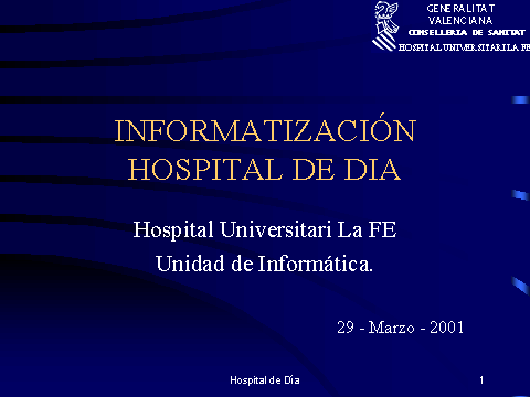 INFORMATIZACIÓN HOSPITAL DE DIA Hospital Universitari La FE Unidad de Informática. Albarracín Alvarez, JJ; ___________________________________ |