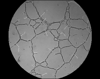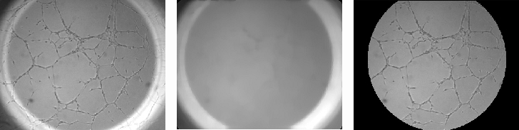 De cada una de las imágenes (ver Fig.3) se pueden extraer una serie de parámetros consensuados como significativos en los procesos angiogénicos. En todas las imágenes se puede observar la presencia de canales (cerrados y abiertos) de diferentes longitudes y con su característica intrínseca de linealidad, células aisladas, grumos de células, fondo de textura uniforme y un halo circundante de mayor brillo que es una interferencia incorporada por condiciones de contorno en la adquisición. El procesamiento individual se puede dividir a su vez en 3 partes: 1) pre-procesamiento, 2) realce de las morfologías de interés, y 3) post-procesamiento.