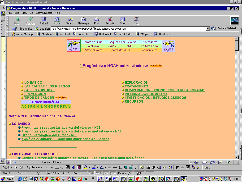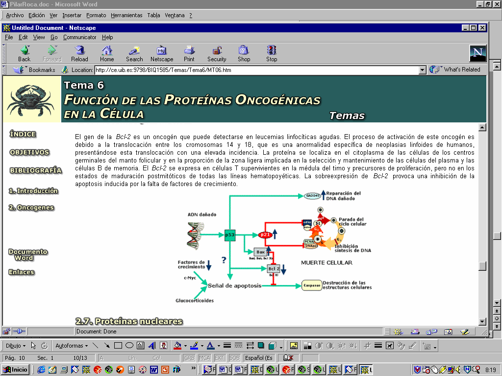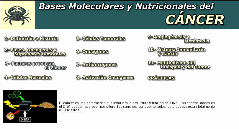 El objetivo que nos planteamos fue desarrollar en el entorno multimedia la asignatura "Bases Moleculares y Nutricionales del Cáncer" del programo de doctorado de Nutrición Molecular de la Universitat de les Illes Balears. Esta asignatura era una candidata ideal para ser desarrollada en estos entornos, por la gran cantidad de información que podemos encontrar en la red, tanto desde el punto de vista nutricional, epidemiológico como molecular.