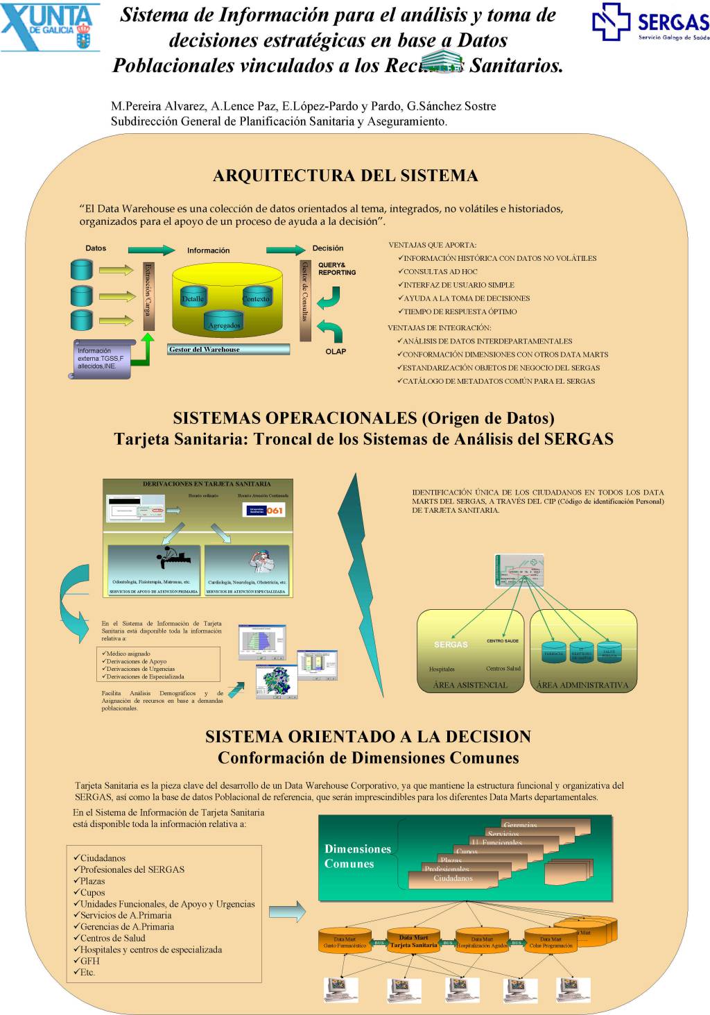 El sistema de análisis tiene como punto de partida la identificación única del ciudadano y su asignación actualizada al médico de primaria, lo que define la derivación al resto de la cartera de servicios asistenciales del Servicio Galego de Saúde. Se toma por tanto el Sistema operacional de Tarjeta Sanitaria como origen imprescindible de los datos, además de integrar información procedente de los hospitales respecto a las modalidades asistenciales y los servicios disponibles en los centros para los diferentes sectores de la población.