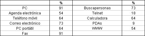 ResultadosLos resultados que se muestran corresponden a los datos recogidos de las contestaciones a las encuestas realizadas en esta exploración inicial con el grupo de 11 usuarios, cuya experiencia previa en el manejo de dispositivos informáticos y de comunicaciones así como en el uso de servicios de Internet se presenta en la Tabla 1.