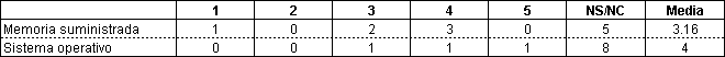 La investigación de la opinión de los usuarios sobre las características computacionales se han dirigido a dos elementos clave como son la dimensión de memoria y el sistema operativo. Las valoraciones resultantes se muestran en la Tabla 5.