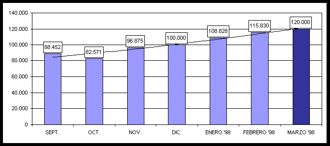De la misma manera, la Home Page también ha visto incrementar sus entradas (Tabla 2), hasta llegar a una punta de 42.000 entradas en el mes de Febrero del presente año y con previsión de rebasar las 45.000 entradas en el mes de Marzo.