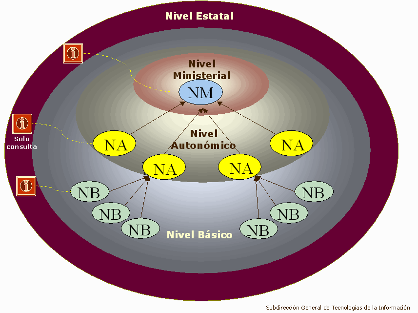 Metodología de la SGTI del MSC La SGTI viene aplicando una metodología que se basa en una serie de requisitos o principios que deben ser respetados durante todas las fases de desarrollo y construcción de un Sistema de Información (SI). 1er. Requisito. La orientación a proceso. Se tratará la problemática general y no partes o elementos de la misma. La solución a la misma será global; no parcial 2 º Requisito. El dato se cargará una sola vez, tan pronto se produzca y tan cerca de donde se produzca. La captura de datos se hará en origen; es decir, donde se produzca el hecho informativo, sin intermediarios ni cambio de soporte que haga peligrar la calidad del dato. 3er. Requisito. Descentralización de la gestión de la información Permitirá la carga, búsqueda y difusión de la información en cualquier momento y a cualquier usuario que esté acreditado y registrado en el sistema. 4º Requisito. Centralización en la definición de la información Definición con criterios unificados de los diferentes elementos informacionales (entornos, entidades, atributos, funciones, tablas del sistema, reglas de validación, alarmas, salidas, etc.) 5º Requisito. Respeto a las peculiaridades organizativas Contendrá una herramienta de administración que permita asignar privilegios de acceso de acuerdo con la estructura autonómica del Estado y las peculiaridades competenciales en sanidad de las CCAA. 6º Requisito. Privacidad y Seguridad. El sistema identificará a quien carga los datos (titular) y le protegerá de accesos no autorizados garantizando su privacidad. El usuario responderá de la calidad de los datos (generación, carga y coherencia). Los datos tipificados por la LOPD como sensibles serán objeto de especial protección mediante tecnología Internet segura, conforme al estándar X.509, que identifica a los usuarios a través de certificación digital. Esta tecnología responde de la autenticidad, confidencialidad, integridad y no repudio de la comunicación. Accesos mediante certificación digital Clase 2 CA de la Fábrica Nacional de la Moneda y Timbre (proyecto CERES) 7º Requisito. Universo de datos en 3 niveles. El universo de datos se estructura según 3 niveles: Nivel Básico (NB), Nivel Autonómico (NA) y Nivel Ministerial (NM). Si así lo consensúan los tres niveles puede crearse un Nivel Estatal sin restricción de universo de datos pero con restricción del modelo de datos (acceso prohibido a determinados campos) 8º Requisito. La organización precede a la mecanización