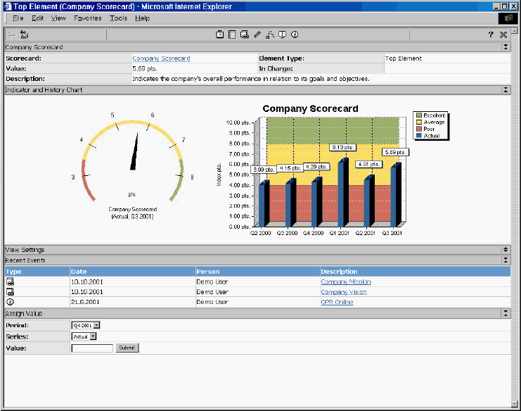 Francisco Javier López Fernández presentó la ponencia "Nuevas Herramientas para la gestión estratégica". Su objetivo fue presentar una herramienta, el Balanced Scorecard (BSC) o cuadro de mando integral, que ayuda a la organización a planificar, implantar, comunicar y llevar a la práctica su estrategia. Divide su intervención en tres partes: El Balanced Scorecard y la Implantación de la Estrategia Proyecto tipo de Implantación de BSC Necesidad de una Herramienta informática El Balanced Scorecard y la Implantación de la Estrategia En este primer apartado, se presentó una introducción al Balanced Scorecard, como una herramienta práctica de gestión que permite enlazar la visión y estrategia de la organicazación, con las acciones cotidianas de los empleados, a través de indicadores e iniciativas concretas. Una vez implantado, el sistema Balanced Socrecard permitirá planificar, implementar y comunicar la estrategia, así como alinear a las personas con los objetivos de la organización. Proyecto tipo de Implantación de BSC En el segundo apartado, se presentaron las fases más importantes que caracterizan la implantación de un proyecto de BSC. La necesidad de una herramienta informática Las función principal de las herramientas informáticas para Balanced Scorecard es la gestión de un conjunto de indicadores. A continuación se indican las principales características que deben distiguir a una herramienta de soporte de Balanced Scorecard. · Definición de Indicadores: Diferentes tipos de valores, posibilidad de introducir fórmulas de calculo, gestión de series y valores históricos, definición de jerarquías, definición de diferentes niveles de control del valor de indicador (máximo, mínimo, etc.). · Integración de Indicadores : Captura de valores de otros sistemas por ODBC, planificación de importaciones de datos.· Acciones : Introducción de Planes de Acción, Comentarios, estrategia y visión. Gestión de alarmas, con envío de mensajes por e-mail.· Visión Global : Visualización agregada en "árbol" con posibilidad de acceso inmediato a la información de detalle; indicadores gráficos de valor y tendencia; mapa estratégico. Posibilidad de integración en la intranet de la compañía.· Informes : Generación de informes configurables. Exportación de datos a otros sistemas y visualización vía Web.· Gestión de usuarios y perfiles : Control de accesos, personalización del entorno para cada usuario. Multiidioma.· Garantía : Cumplimiento de los estándares. Certificación del Balanced Scorecard Collaborative; configuración a medida de todo el entorno; Facilidad de uso; referencias a nivel internacional; actualización permanente.