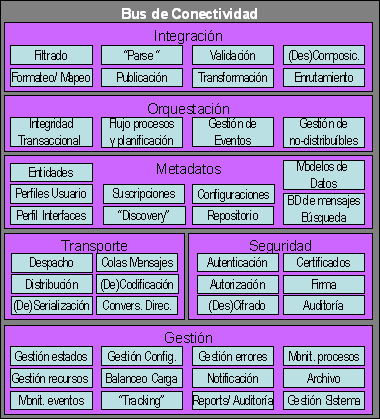 Visión completa de la Interoperabilidad Niveles o datos - transacciones, replicación- o aplicaciones -adaptadores- o procesos - orquestación-Servicios o transporte-recepción/ envío- , o parsing -transformación-, o routing -declarativo o en base a datos-, o seguridad -firma, cifrado-, o gestión -tracking y auditoría-Vía motores de integración (EAI) Si tuviéramos que elegir un área que sea más crítica para Salud, esta sería la interoperabilidad vía estándares abiertos de Internet entre todos los agentes realcionados (HIS y SS.II. Depart con Mi Comunidad, Otras Comunidades, Colegios Farmacéuticos, Centros Concertados, Proveedores, Ministerio, Europa…) Desde el punto de vista de Microsoft la conectividad requiere una infraestructura propia (como el portal) denominada "Broker de integración" o "bus de conectividad", cuya estructura podría ser la siguiente: A través de productos como Biztalk, Microsoft puede ayudar a realizar esta infraestructura. Biztalk puede transportar información de forma segura, convertir formatos de datos, conectar Bases de Datos y Aplicaciones, Interoperar distintas arquitecturas, soportar workflow de procesos y personas e incluye un avanzado motor de reglas. Todo ello desde el mismo interfaz…