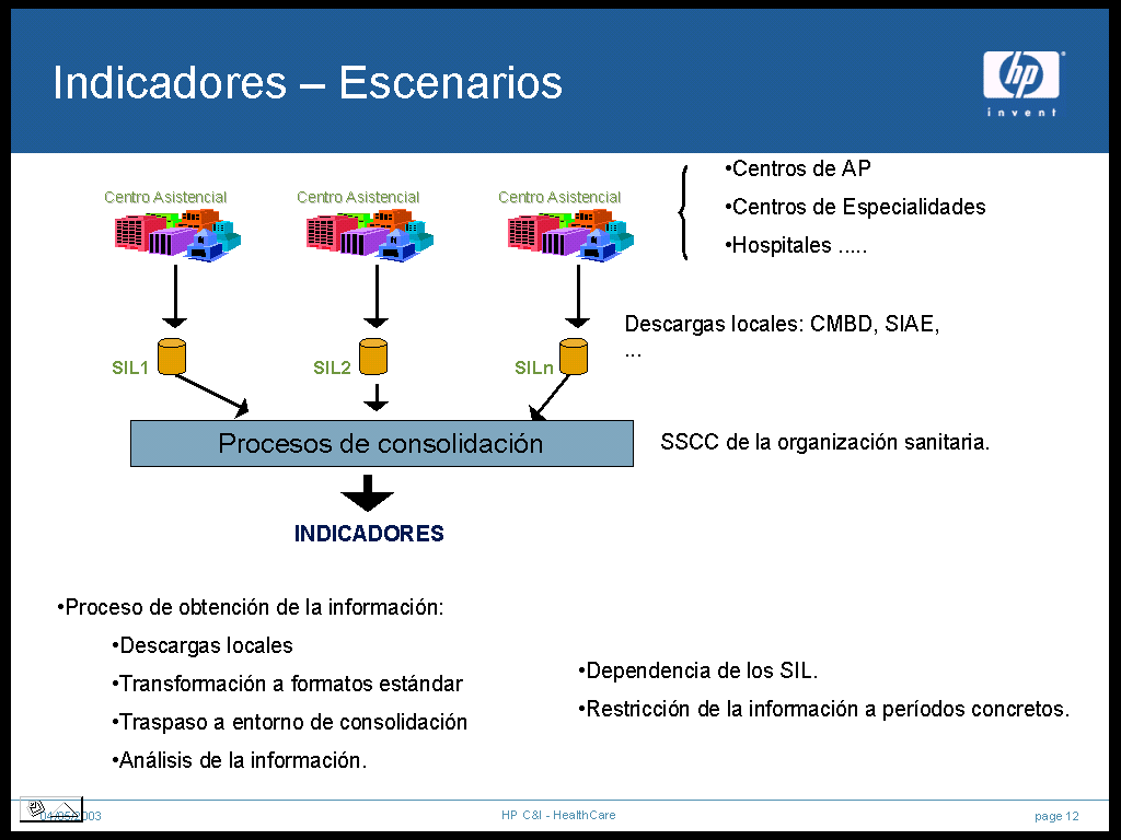 La Mesa fue moderada por D. Mariano Gallo Fernández, Director Gerente del Instituto Navarro de Salud Laboral. Los ponentes fueron: D. Luis Ruiz de la Prada. Responsable de Sistemas de Gestión Sanitaria de 3M España. Dña. Carmen Sauca. Consultora Senior de Hewlett Packard D. Tomás Manzanares y D. Marcial Chinchilla de SAP España. D. Luis Ruiz de la Padra no ha podido proporcionarnos su resumen por lo cual lo omitimos. Carmen Sauca presentó la Ponencia "Evolución Tecnológica y funcional en la Gestión de Indicadores Asistenciales". Comenzó indicando las propiedades de los indicadores y que son: Reflejar la realidad Ser fáciles de recoger, confeccionar e interpretar Ser válidos y fiables Proporcionar el apoyo a la Toma de Decisiones La evolución tecnológica ha colaborado en el cumplimiento de estas propiedades